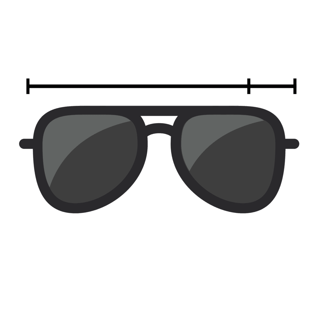 El tamaño del armazón se refiere a la medida horizontal del mismo, tomada desde el centro de la bisagra izquierda hasta la bisagra derecha. Nuestros armazones están disponibles en una o más tallas. Consulta el rango en la tabla a continuación: